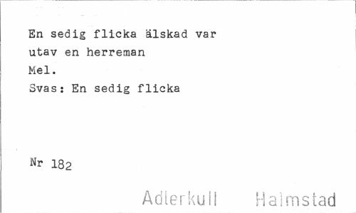 //// En sedig flicka älskad var //// utav en herreman //// Mel. //// Svas: En sedig flicka Nr 182 //// Adlerkuil Halmstad ////