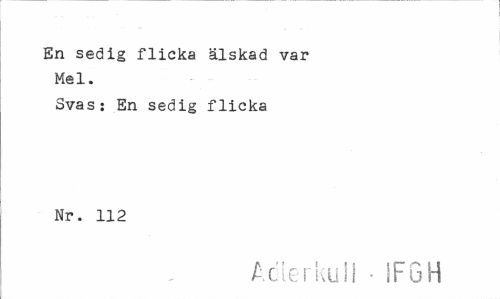 //// En sedig flicka älskad var Mel. //// Svas: En sedig flicka Nr. 112 //// Acler kull • SF3H ////