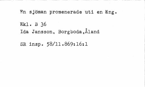 //// En sjöman promenerade uti en äng. Ekl. B 36 //// Ida Jansson, Borgboda,Åland SR insp. 58/11.869sl6sl ////