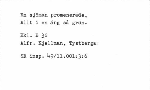 //// F«n sjöman promenerade, Allt i en äng så grön. //// Ekl. B 36 //// Alfr. Kjellman, Tystberga SR insp. l+9/11.001:3i6 ////