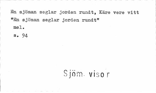 //// Sn sjöman seglar jorden rundt, Käre vere vitt "Sn sjöman seglar jorden rundt" mel. s. 94 //// S jörrv viso r ////
