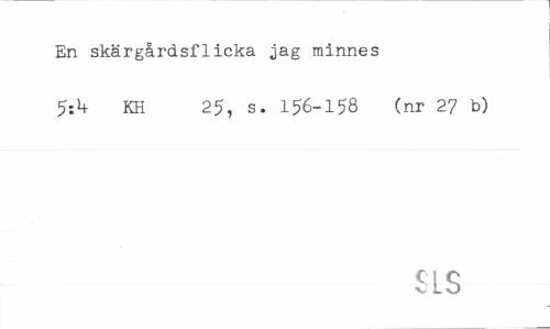 //// En skärgårdsflicka jag minnes //// 5:*f KH 25, s. 156-158 (nr 27 b) //// SLS ////