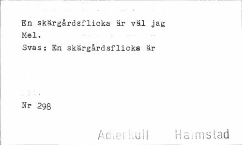 //// En skärgårdsflicka är väl jag Mel. //// Svas: En skärgårdsflicka är Nr 298 //// AcHerkuil Halmstad ////