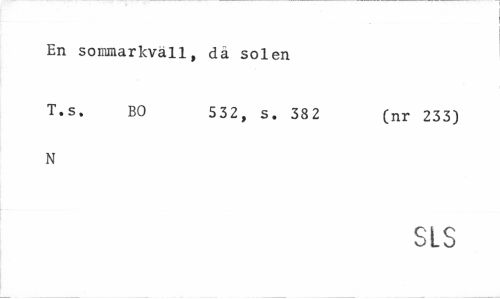 //// En sommarkväll, dä solen //// T-s- BO 532, s. 382 (nr 233) //// N //// SLS ////