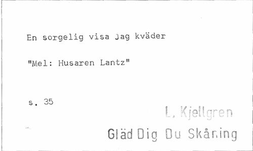 //// I //// En sorgelig visa Jag kväder "Mel: Husaren Lantz" //// s. 35 //// pol I nrP n //// (•-rr, fi H | 'V » * ..; J VO 6 B //// Gläd Dig Du Skåning ////