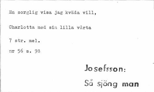 //// Sn sorglig visa jag kväda vill, //// Charlotta med sin lilla vårta //// 7 str. mel. //// nr 56 s. 98 //// JoseffFon: //// Sa sjöng man ////