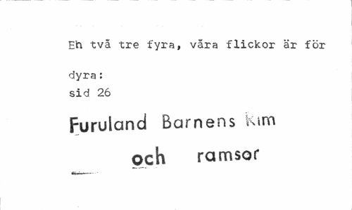 //// Eh tvä tre fyra, vara flickor är för //// dyra: sid 26 //// Furuland Barnens Kim och ramsor ////