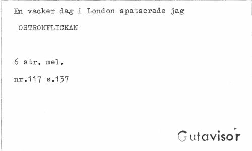 //// En vacker dag i London spatserade jag OSTROHFLICKAN //// 6 str. mel, //// nr.117 b.137 //// G af a visor ////