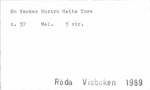 //// En Vacker Hustru Hette Tora s. 57 Mel. 5 str. //// Röda Visboken 1969 ////