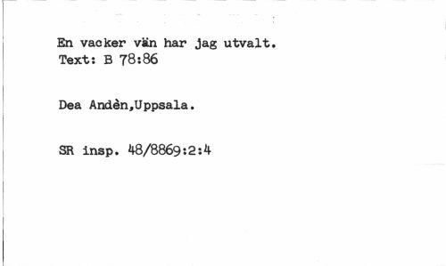 //// En vacker vän har jag utvalt. Text: B 78:86 //// Dea Anden,Uppsala. //// SR insp. 48/8869:2:4 ////