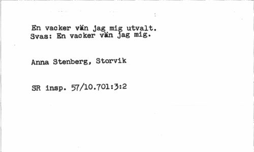 //// En vacker vän jag mig utvalt. Svas: En vacker vän jag mig. //// Anna Stenberg, Storvik //// SR insp. 57/10.701:3:2 ////