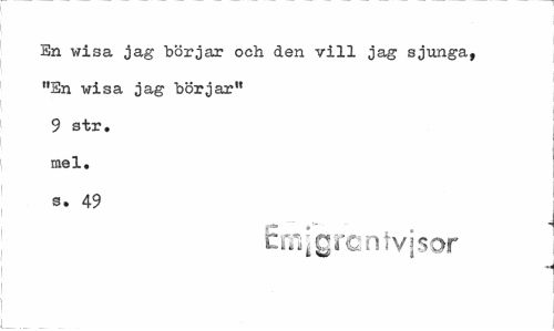 //// En wisa ja g börjar och den vill jag sjunga, "En wisa jag börjar" 9 str. mel. s. 49 //// fcrfijgrcntvjsor ////