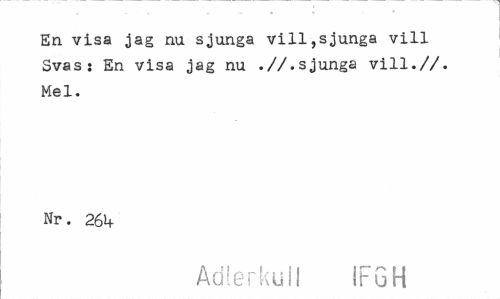 //// En visa jag na sjunga vill,sjunga vill Svas: En visa jag nu .//.sjunga vill.//. Mel. //// Nr. 261+ //// Adlerkull IFGH ////