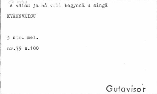 //// Å väisä ja nå vill begynna u singä KVÄNNVÄISU //// 3 str. mel. nr.79 s.100 //// GutGviso r ////
