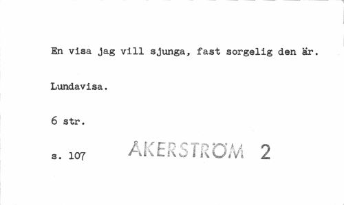 //// En visa jag vill sjunga, fast sorgelig den är. Lundavisa. 6 str. //// K v P n r T r> y** A / n s. 107 S-iåxLiX w- i i\ KJi Vi Z ////