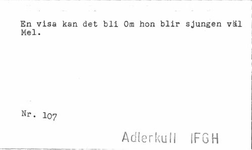 //// En visa kan det bli Om hon blir sjungen väl Mel. //// Nr. I07 //// Adlerkull IFGH ////