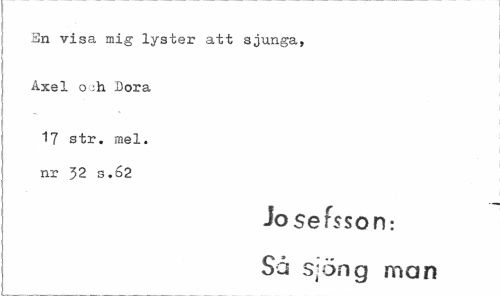 //// Sn visa mig lyster att sjunga, Axel o Dora //// 17 str. mel. nr 32 3.62 //// Josefsson-. Så sjöng man ////