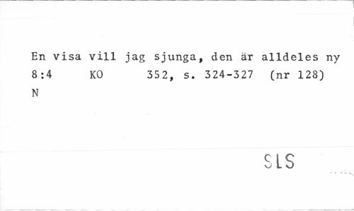//// En visa vill jag sjunga, den är alldeles ny 8:4 KO 352, s. 324-327 (nr 128) //// N //// SLS ////