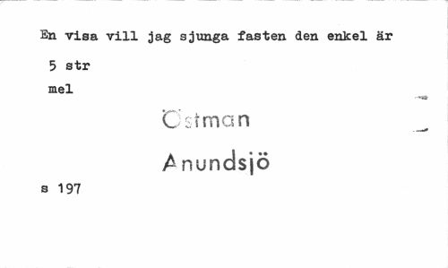 //// En visa vill jag sjunga fästen den enkel är //// 5 str mel //// --i» //// östman _ //// Anundsjö //// S 197 ////