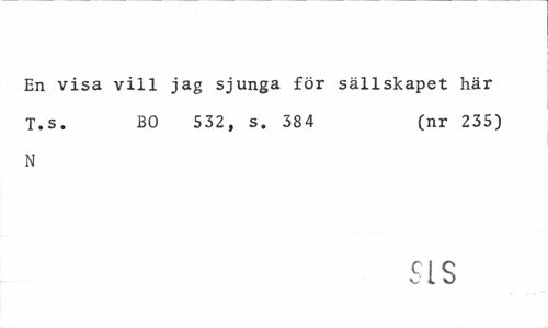 //// En visa vill jag sjunga för sällskapet här T.s. BO 532, s. 384 (nr 235) //// N //// SIS ////