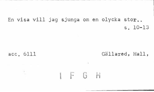 //// En visa vill jag sjunga om en olycka stor,. //// s. 10-13 //// acc, 6111 Gällared, Hall, //// ! F G H ////