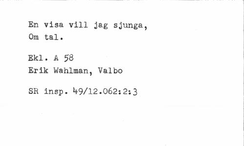 //// En visa vill jag sjunga, Om tal. //// Ekl. A 58 //// Erik Wahlman, Valbo SR insp. *+9/12.062;2;3 ////