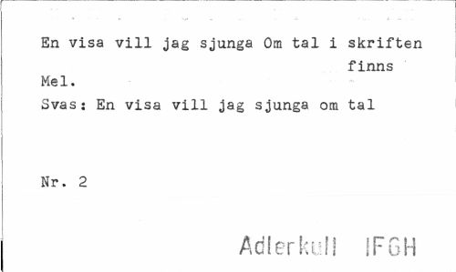 //// En visa vill jag sjunga Om tal i skriften //// finns //// Mel. //// Svas: En visa vill jag sjunga om tal Nr. 2 //// Adierkuii IFGH ////