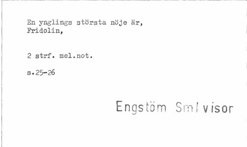 //// En ynglings största nöje är, Fridolin, //// 2 strf. mel.not. s.25-26 //// Engsiom Sm! visor ////