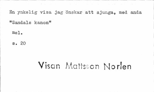 //// Sn ynkelig visa jag önskar att sjunga, med anda "Sandals kanon" mel. s. 20 //// Visan Mattsson Norlen ////