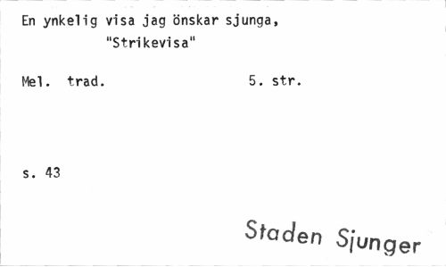 //// En ynkelig visa jag önskar sjunga, "Strikevisa" //// Mel. trad. 5. str. //// s. 43 //// Sfaclen Sjunger ////