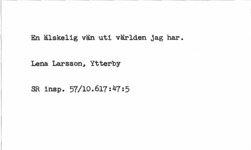 //// En älskelig vän uti världen jag har. Lena Larsson, Ytterby SR insp. 57/10.6l7s47:5 ////