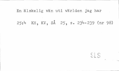 //// En älskelig vän uti världen jag har 25:^ KH, KV, SÅ 25, s. 23^-239 (nr 98) //// SLS ////