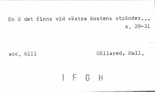 //// En ö det finns vid västra kustens stränder... //// s. 29-31 //// acc. 6111 Gällared, Hall. //// I F G H ////