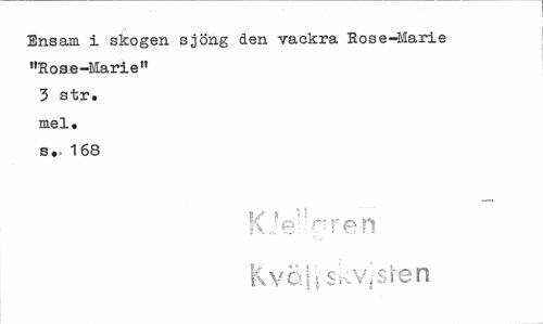 //// Ensam i skogen sjöng den vackra Rose-Marie "Rose-Marie" 3 str. mel. s,. 168 //// V * H //// i\J6 aren K vah skv j sten ////