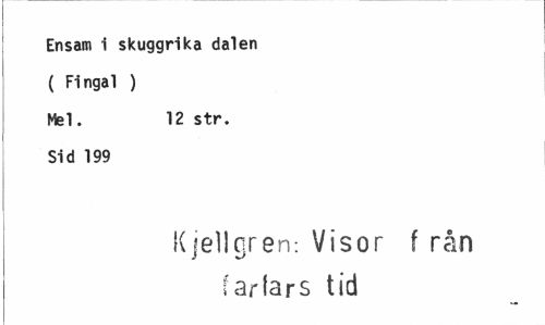 //// Ensam i skuggrika dalen ( Fingal ) //// Mel. 12 str. //// Sid 199 //// Kjellgren: Visor f rån farfars tid ////