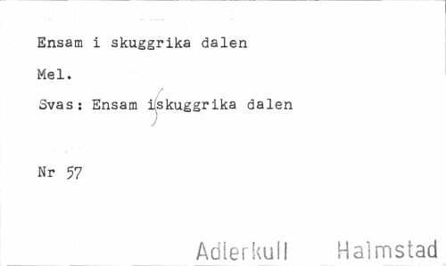 //// Ensam i skuggrika dalen Mel. //// r //// Svas: Ensam iskuggrika dalen Nr 57 //// Adlerkul! Halmstad ////