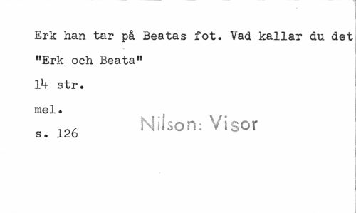 //// Erk han tar på Beatas fot. Vad kallar du det "Erk och Beata" Ih str. mel. //// Nilson: Visor //// s. 126 ////