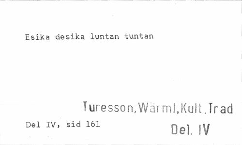 //// Esika desika luntan tuntan //// Turesson,Warm),Kult.Träd //// Del IV, sid 161 r-. , l5» //// Del. IV ////