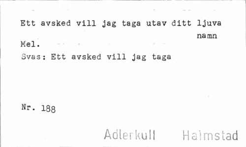 //// Ett avsked vill jag taga utav ditt ljuva //// namn //// Mel. //// Svas: Ett avsked vill jag taga Nr. lag //// Adlerkull Halmstad ////