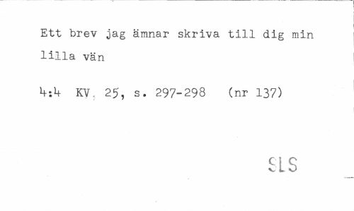 //// Ett brev jag ämnar skriva till dig min lilla vän //// KV. 25, s. 297-298 (nr 137) //// SLS ////