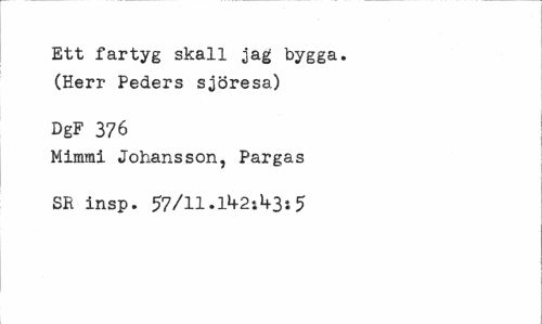 //// Ett fartyg skall jag bygga. (Herr Peders sjöresa) //// DgF 376 //// Mimmi Johansson, Pargas SE insp. 57/H.l1+2;l+3:5 ////