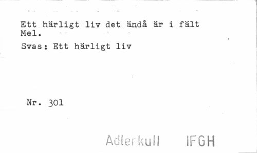 //// Ett härligt liv det ändå ar i fält Mel. //// Svasj Ett härligt liv Nr. 301 //// Adierkuil IF6H ////