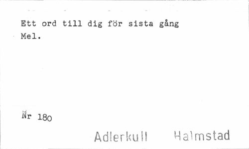//// Ett ord till dig för sista gång //// Mel. //// Nr 18o //// Adlerku i! Halmstad ////