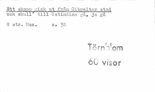 //// Ett skepp ,Tick ut från Gibraltar stad och skull' till Ostindien gå, ja gå //// 8 str. Mus. s. 33 //// T- 1 l //// Torn rom 60 yisor ////