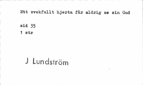 //// Ett svekfullt hjerta får aldrig se sin Gud //// sid 55 1 str //// J Lundström ////