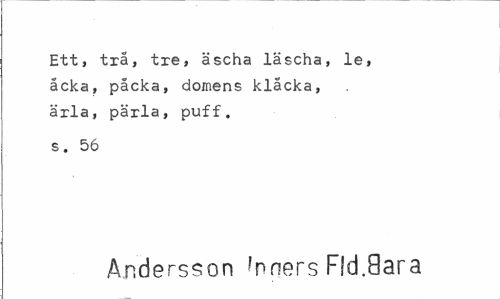//// Ett, tra, tre, äscha läscha, le, äcka, packa, domens klåcka, ärla, pärla, puff, //// s. 56 //// Andersson 'npers F!d.8ara ////