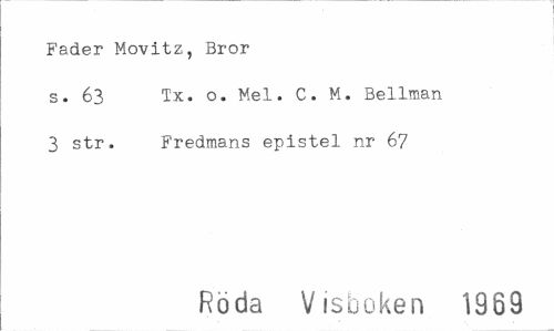 //// Fader Movitz, Bror //// s. 63 Tx. o. Mel. C. M. Bellman //// 3 str. Fredmans epistel nr 67 //// Röda Visboken 1969 ////