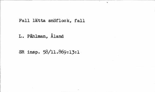 //// Fall lätta snöflock, fall L. Påhlman, Åland SR insp. 58/11.869:13:1 ////