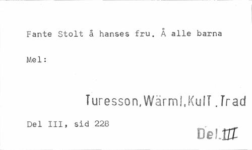 //// Fante Stolt å hanses fru. A alle barna Mel: //// Turesson, Wärml.KulT Jr ad //// Del III, sid 228 //// De IJH ////