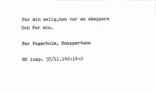 //// Par min salig,han var en skeppare Oeh Par min. //// Per Fagerholm, Snappertuna SR insp. 57/11.142:14:2 ////